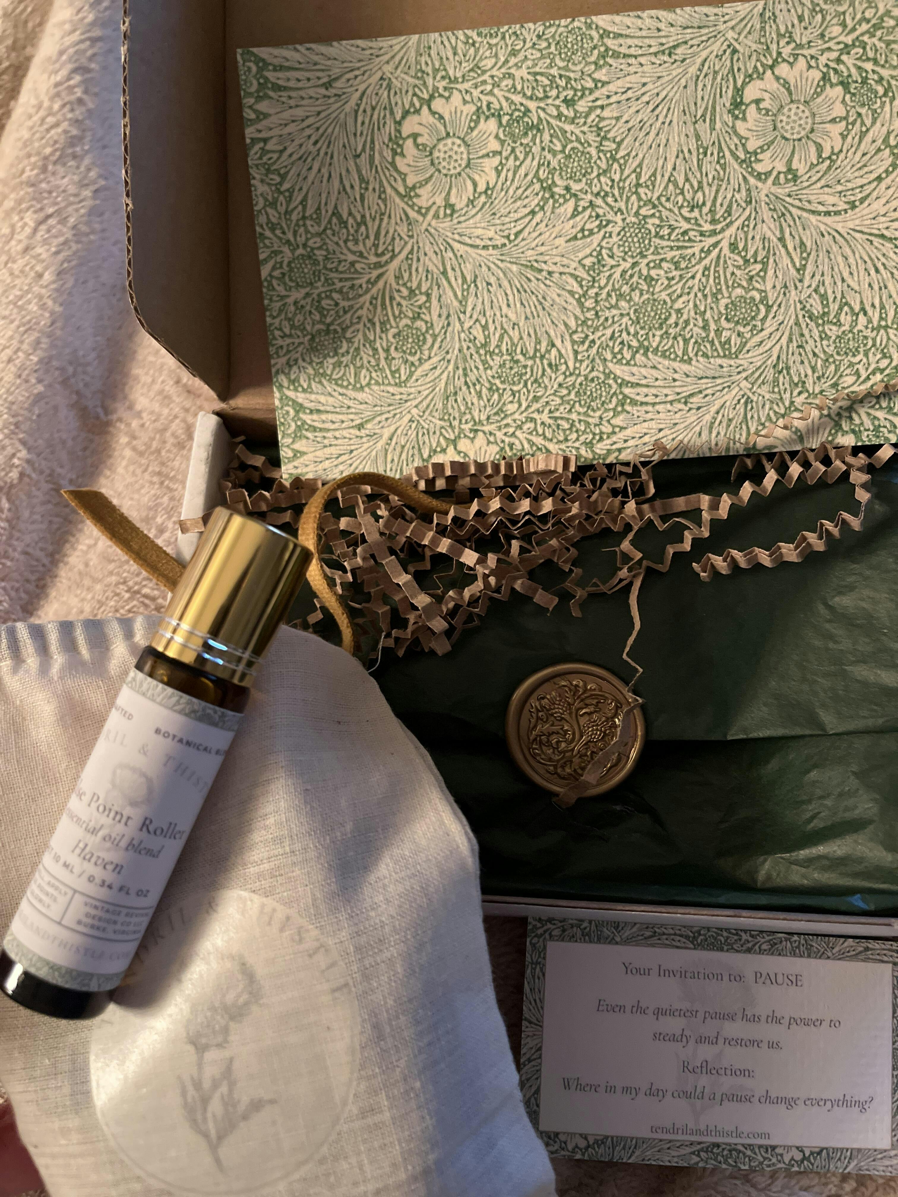 Shake gently. Roll onto pulse points (wrists, temples) and inhale slowly and deeply. Each blend was created as an aromatic reminder to return to yourself, one breath at a time.